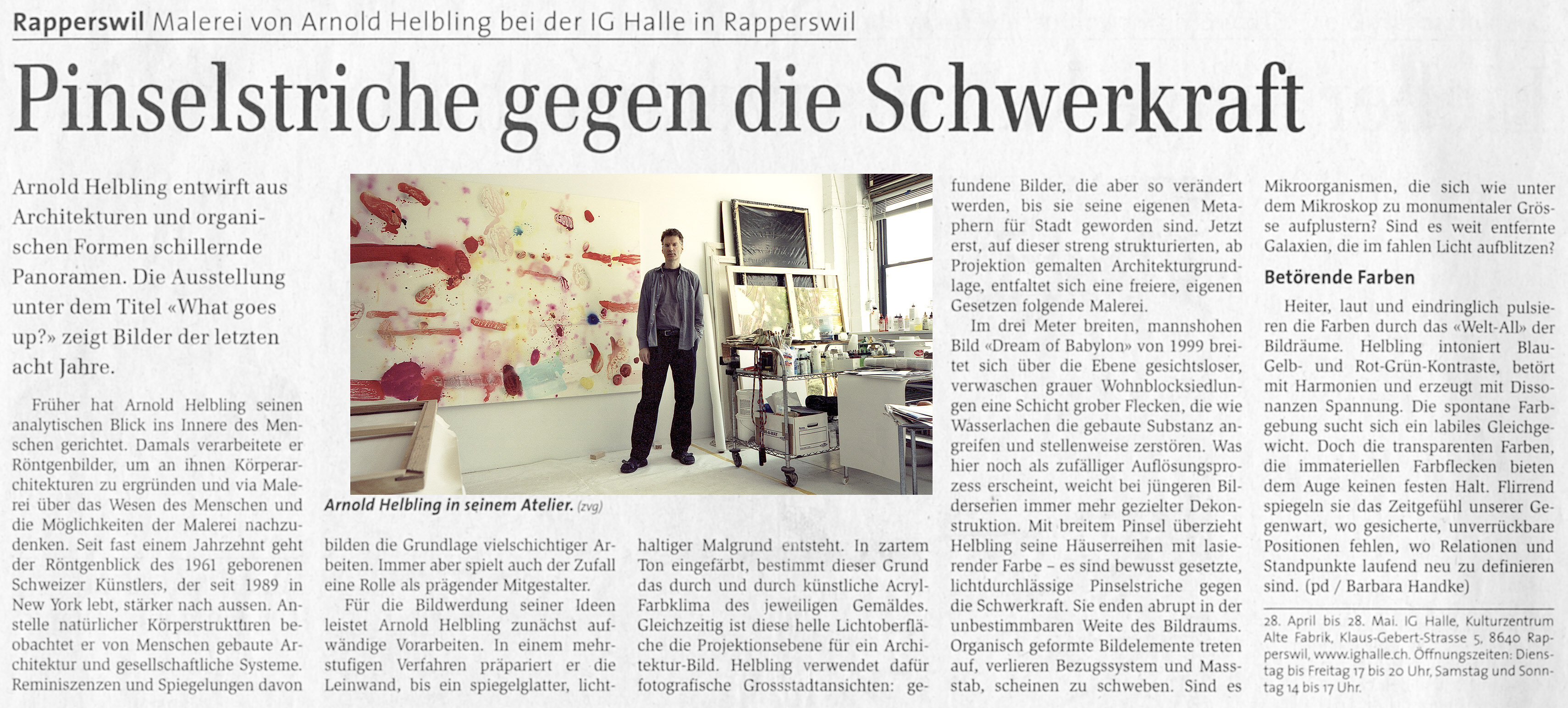 Anlässe in der Ausstellung ARNOLD HELBLING – WHAT GOES UP